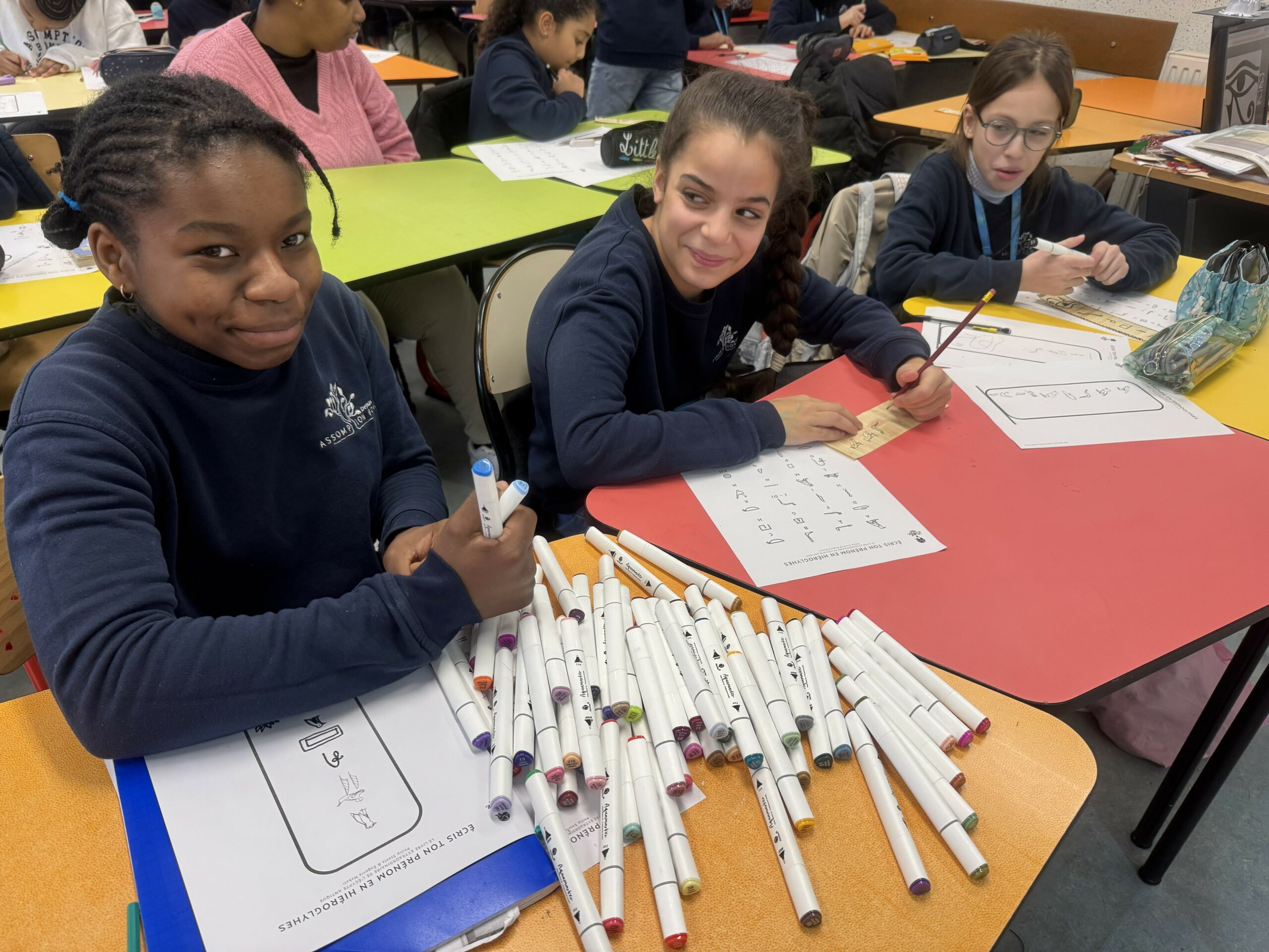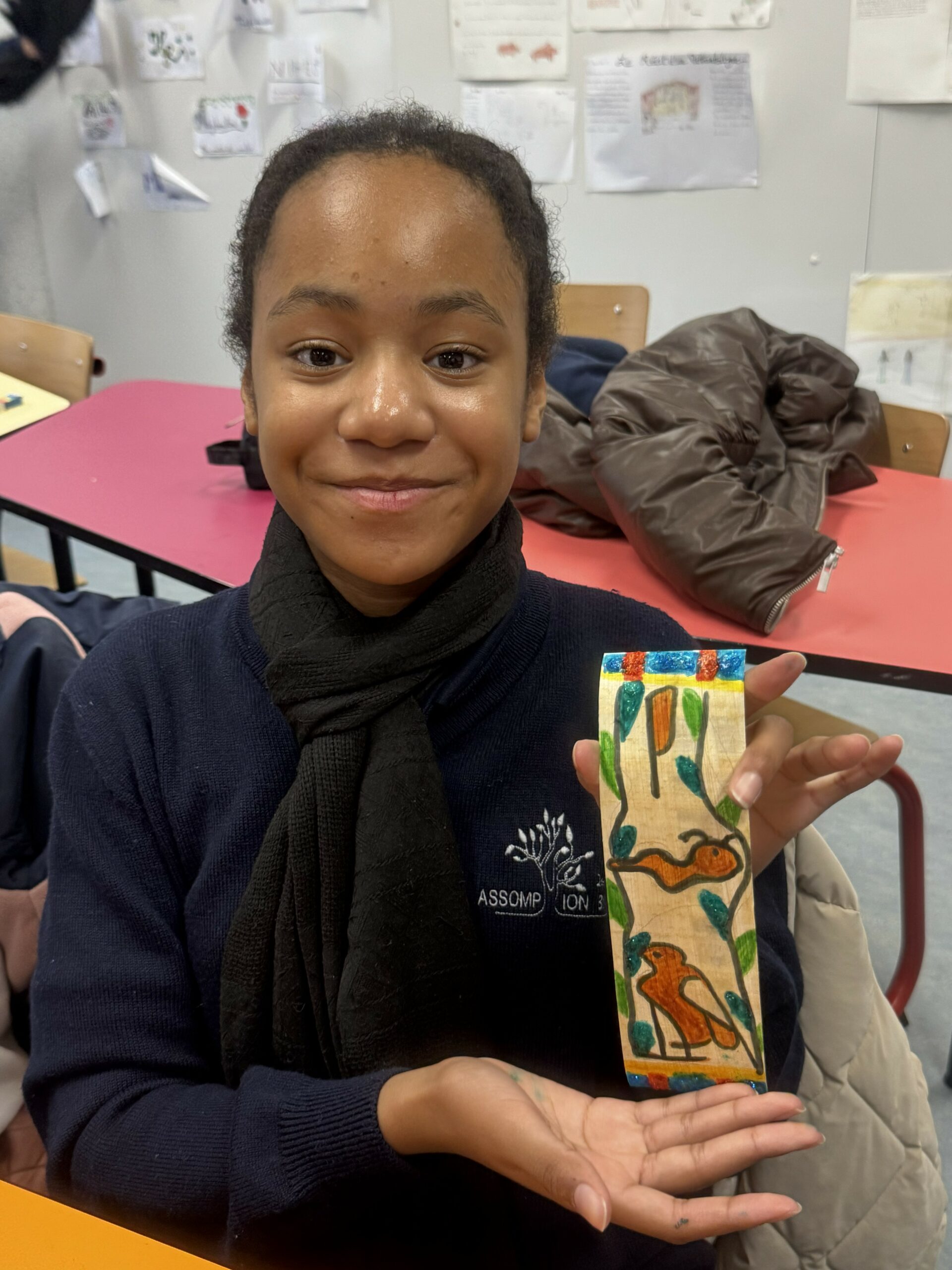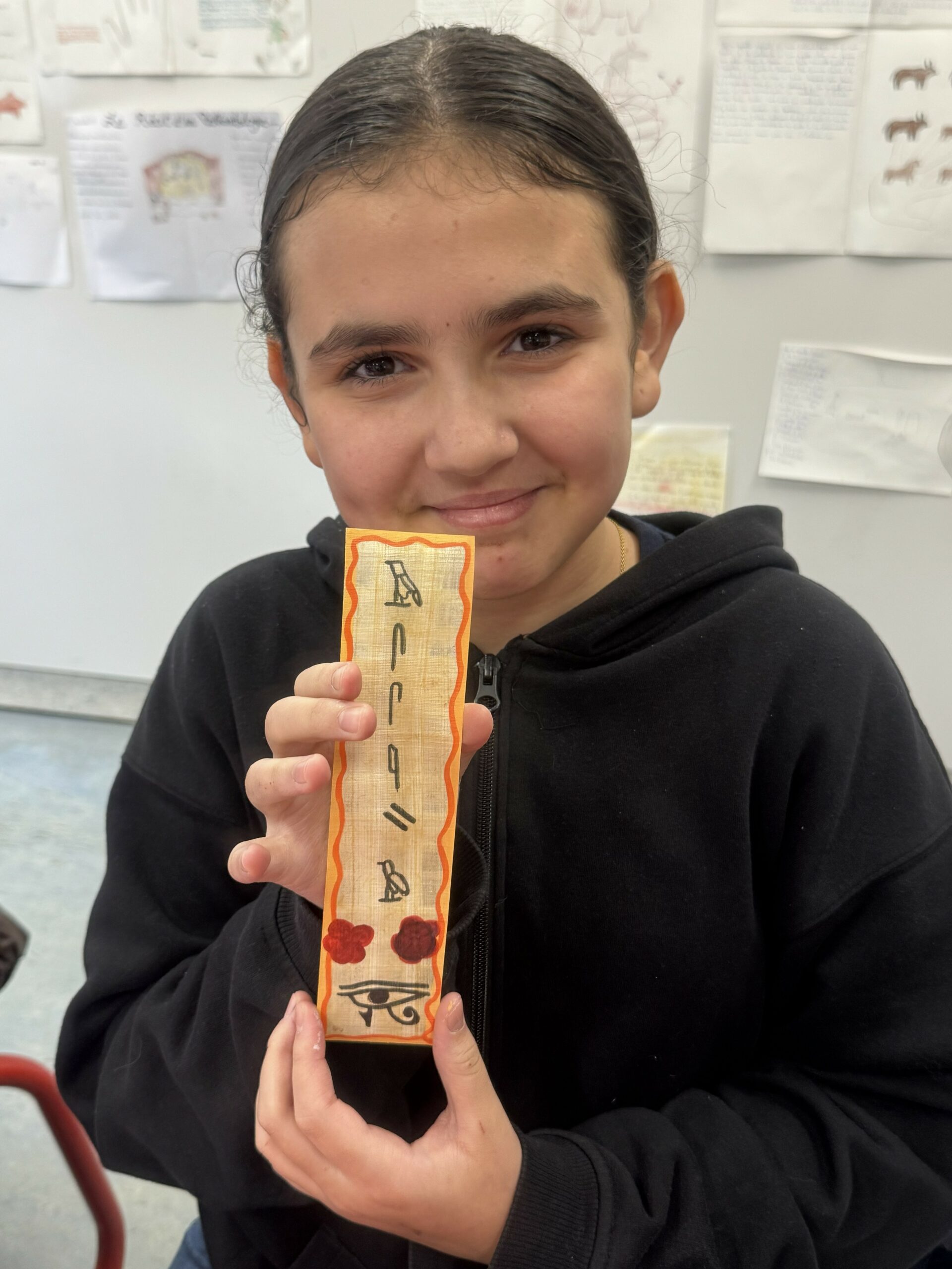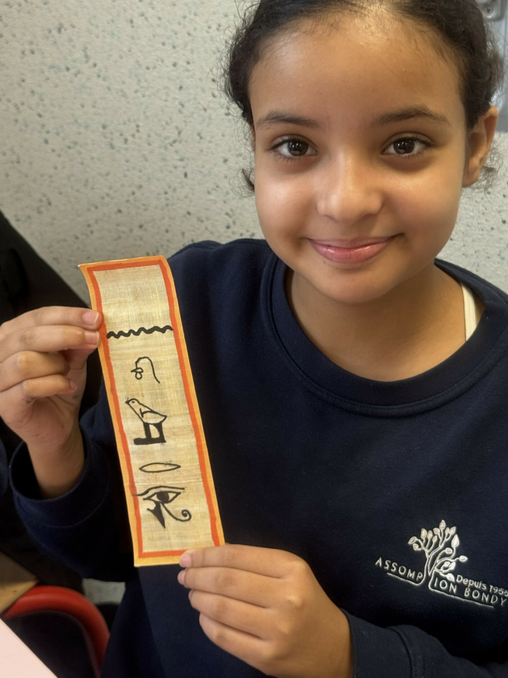 Chaque élève a ainsi réalisé un marque-page personnalisé, sur lequel figurait son prénom retranscrit en hiéroglyphes.