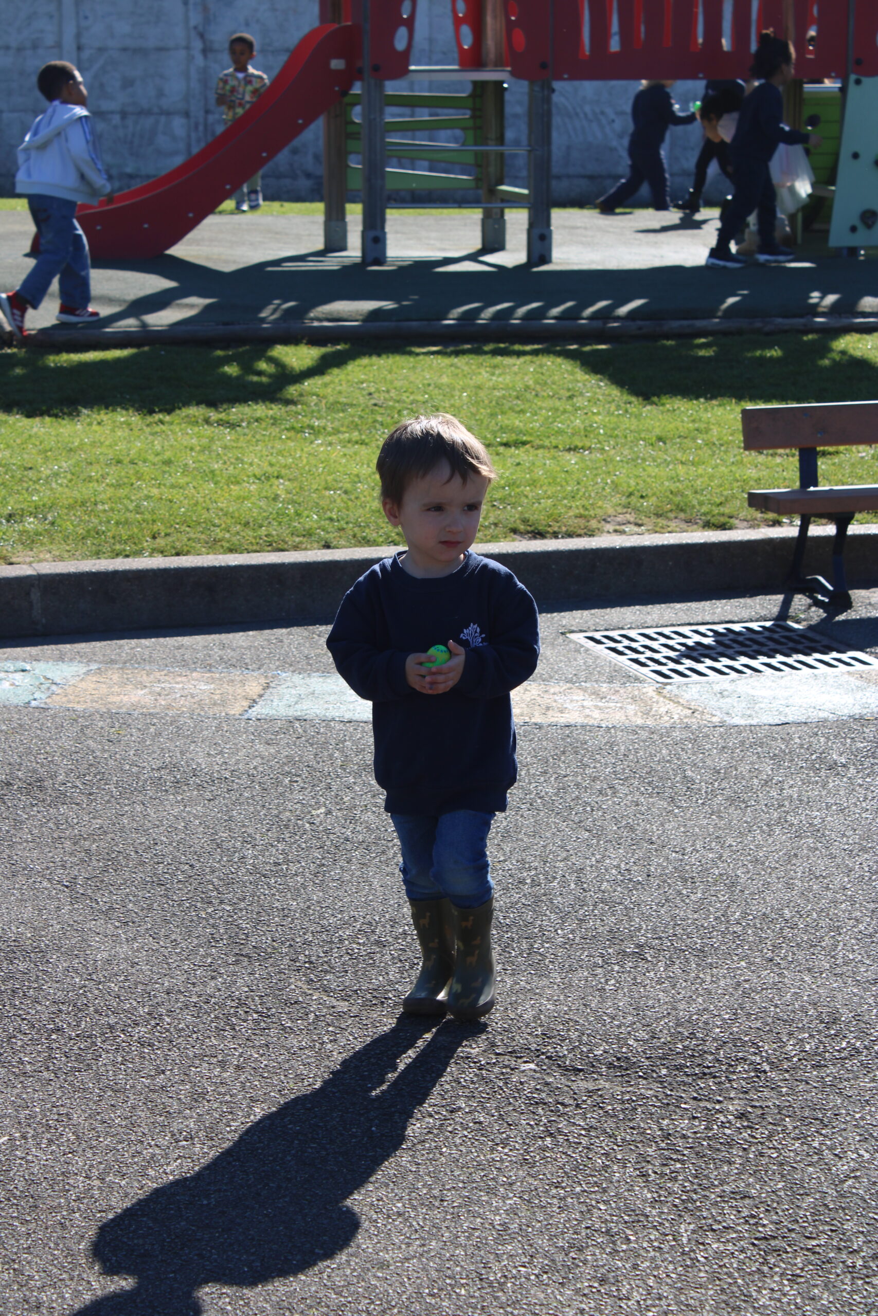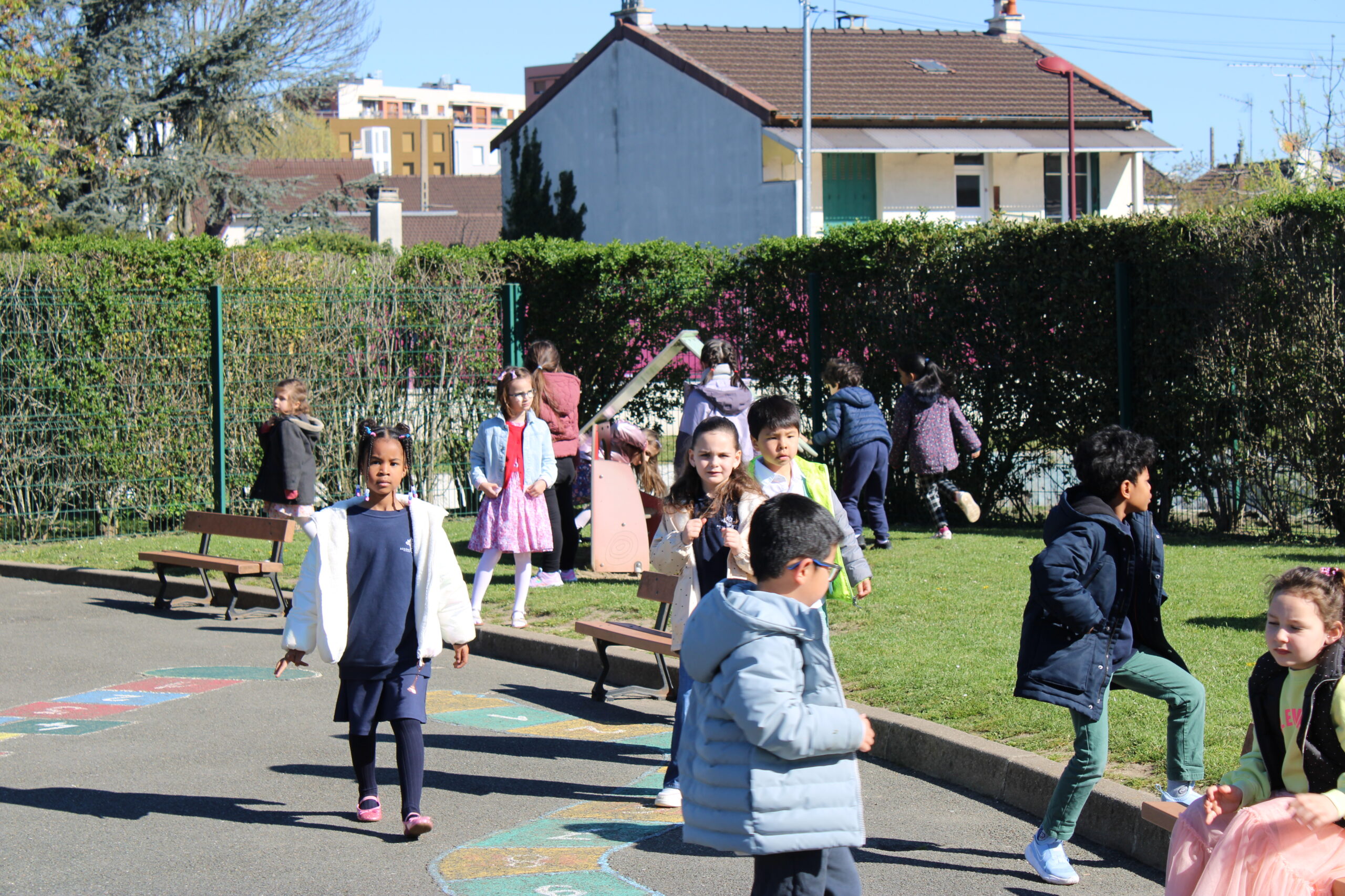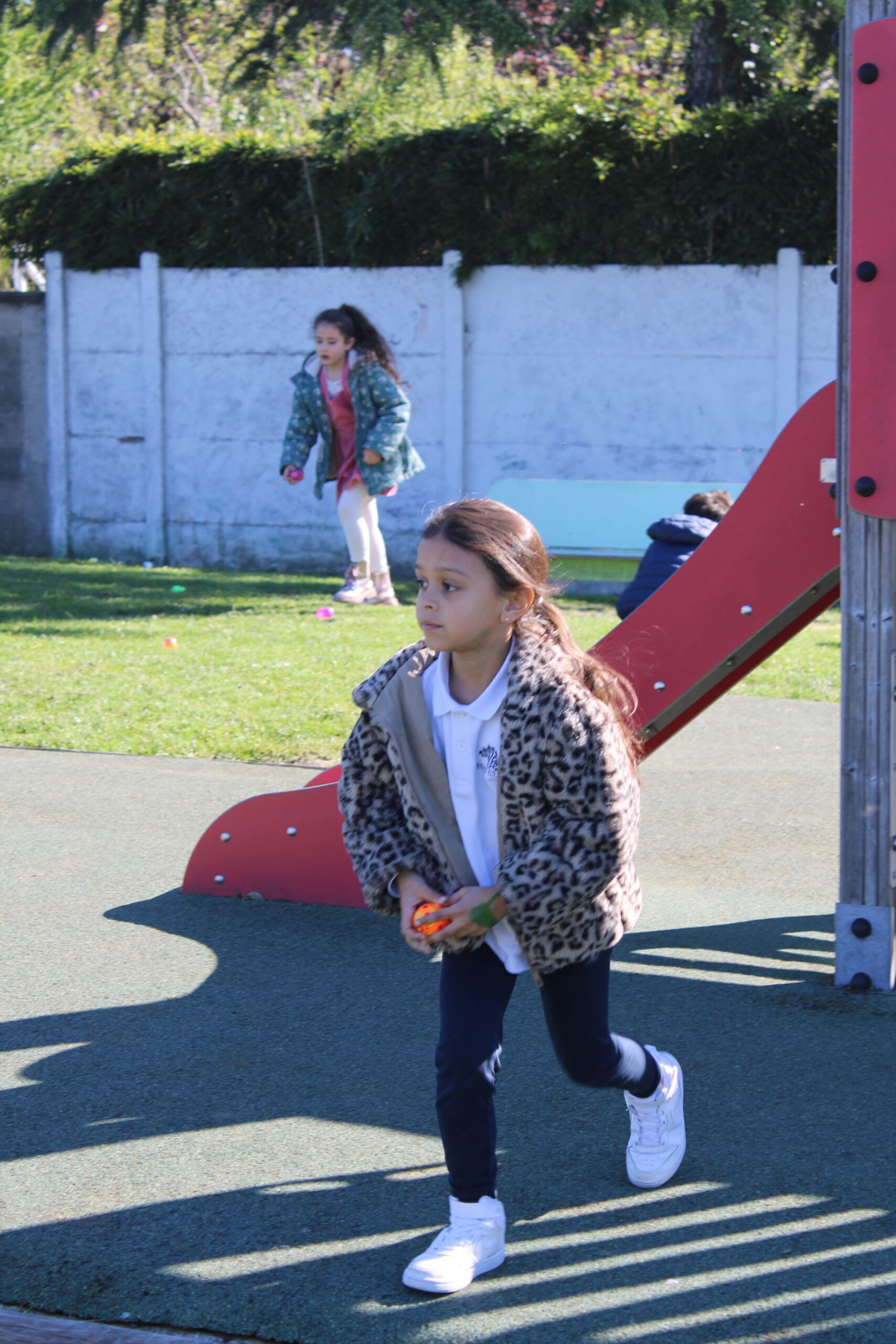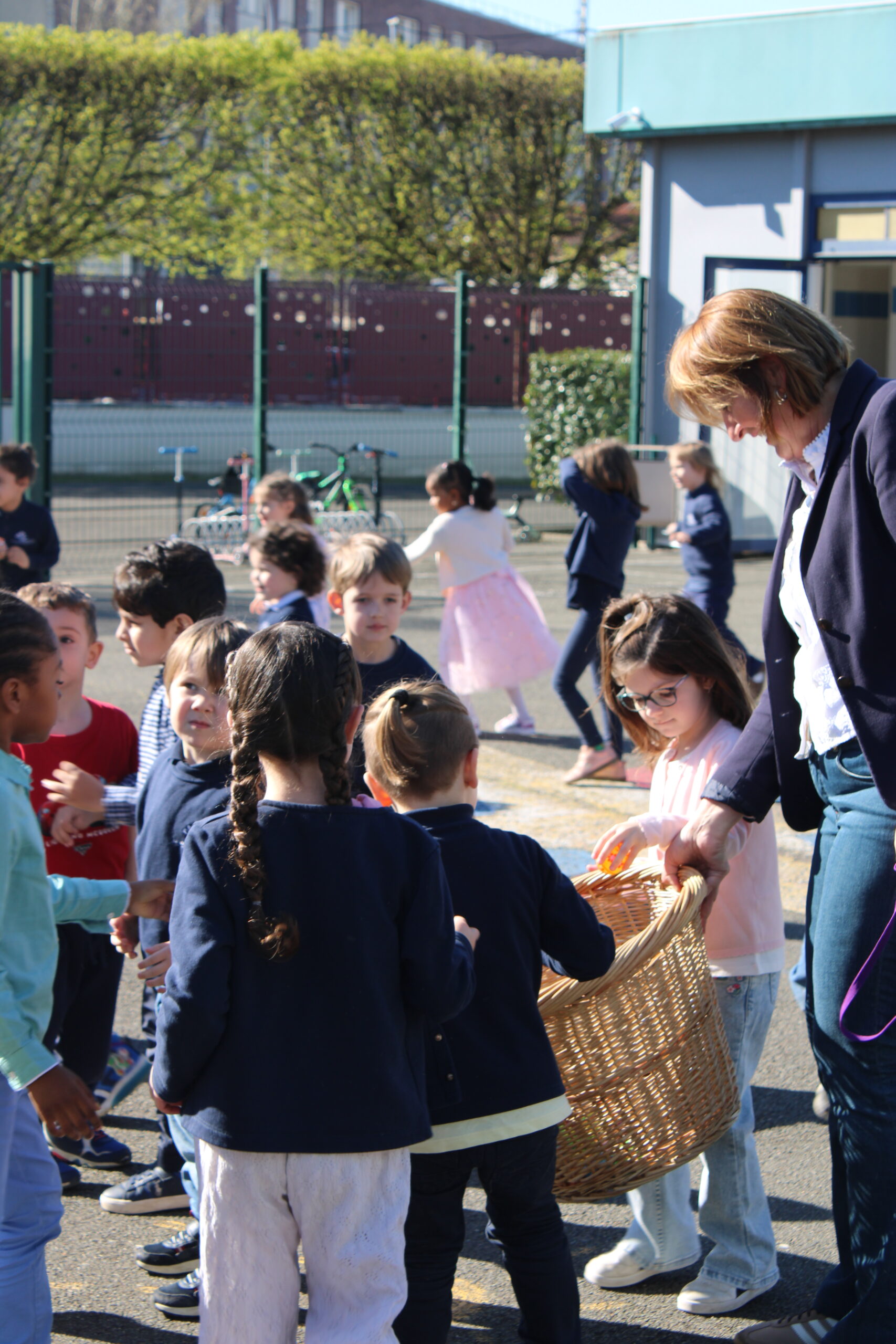 Dès le début de l’activité, les élèves, munis de leur panier, sont partis à la recherche des œufs soigneusement cachés dans la cour et le jardin de l’école. Concentration, excitation et rires étaient au rendez-vous tout au long de la chasse.